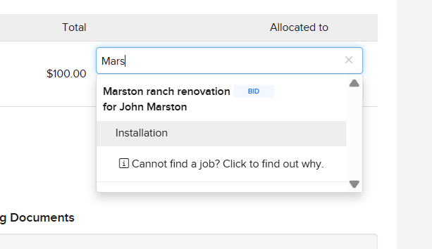 Once the correct job is chosen, click Save and the cost will be added to the correct job: