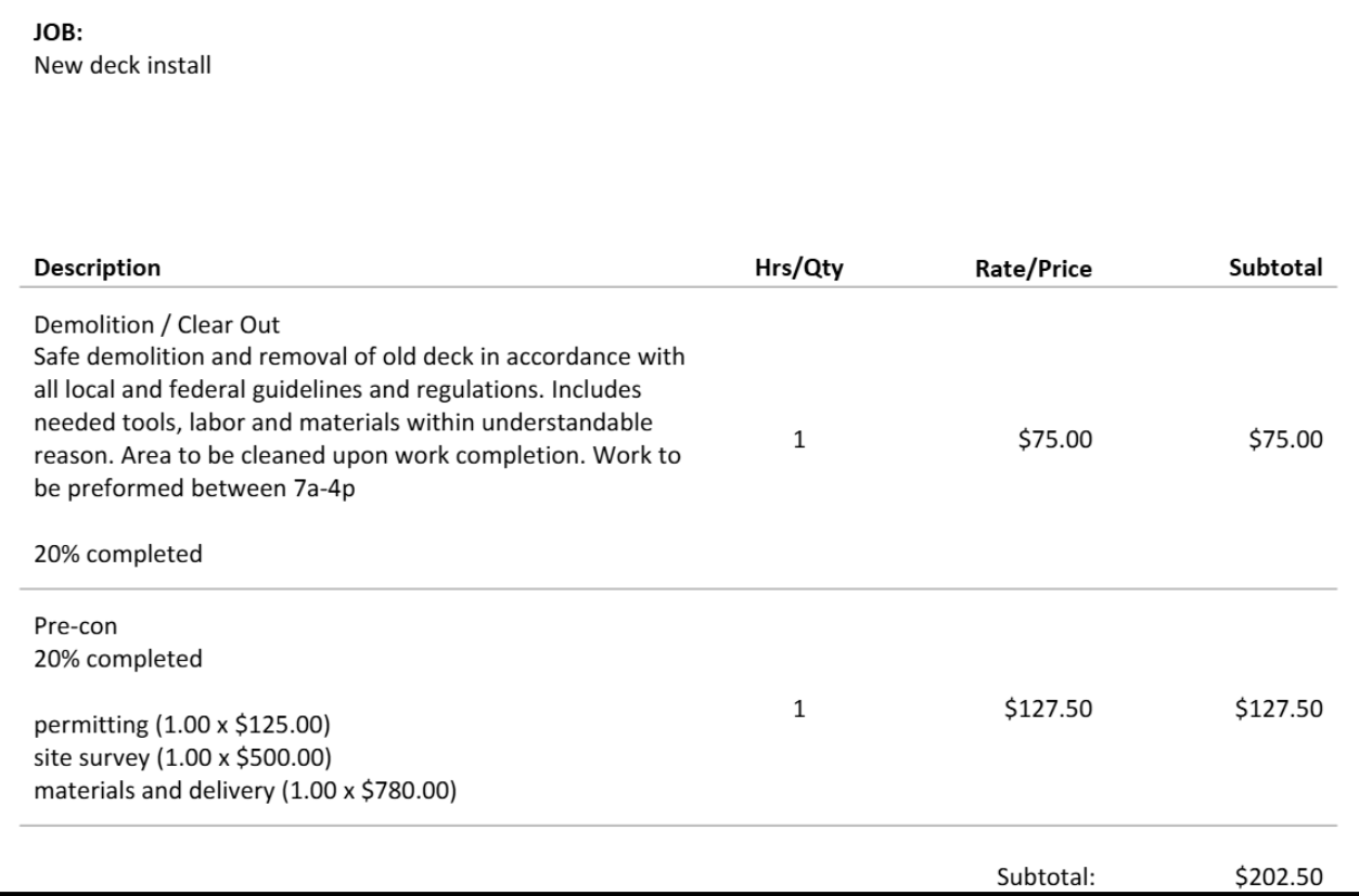 This invoice will then include descriptions for each applicable line item
