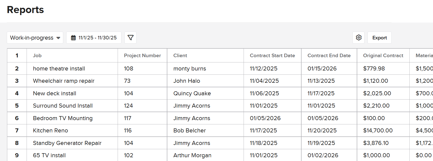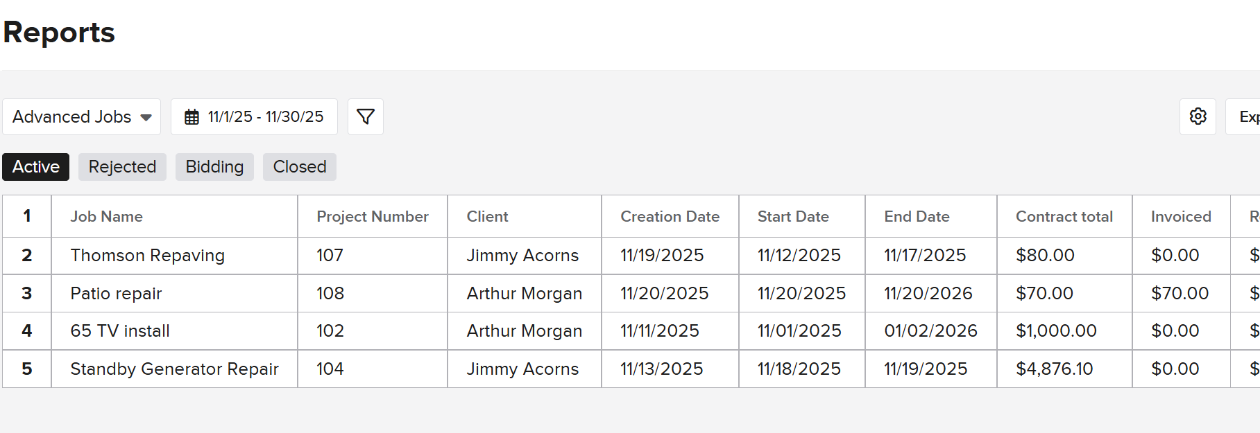 For example, If your reporting range is November 1st- November 30th, the report will pull all jobs created in November. If these jobs had change orders, invoices, etc. added after November 30th, that data will still be included as it is part of the jobs lifecycle.