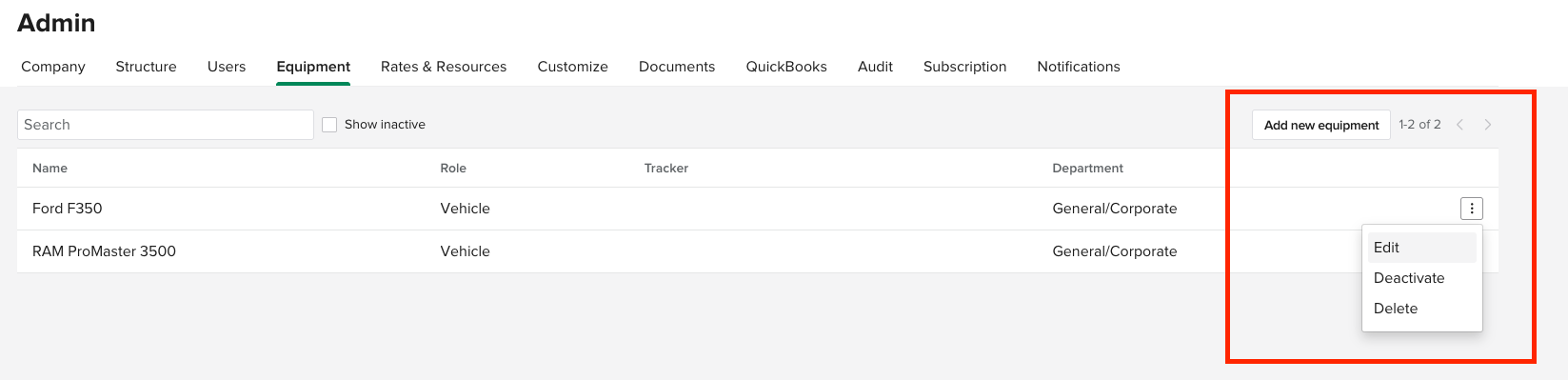 - In Knowify, go to Admin → Equipment